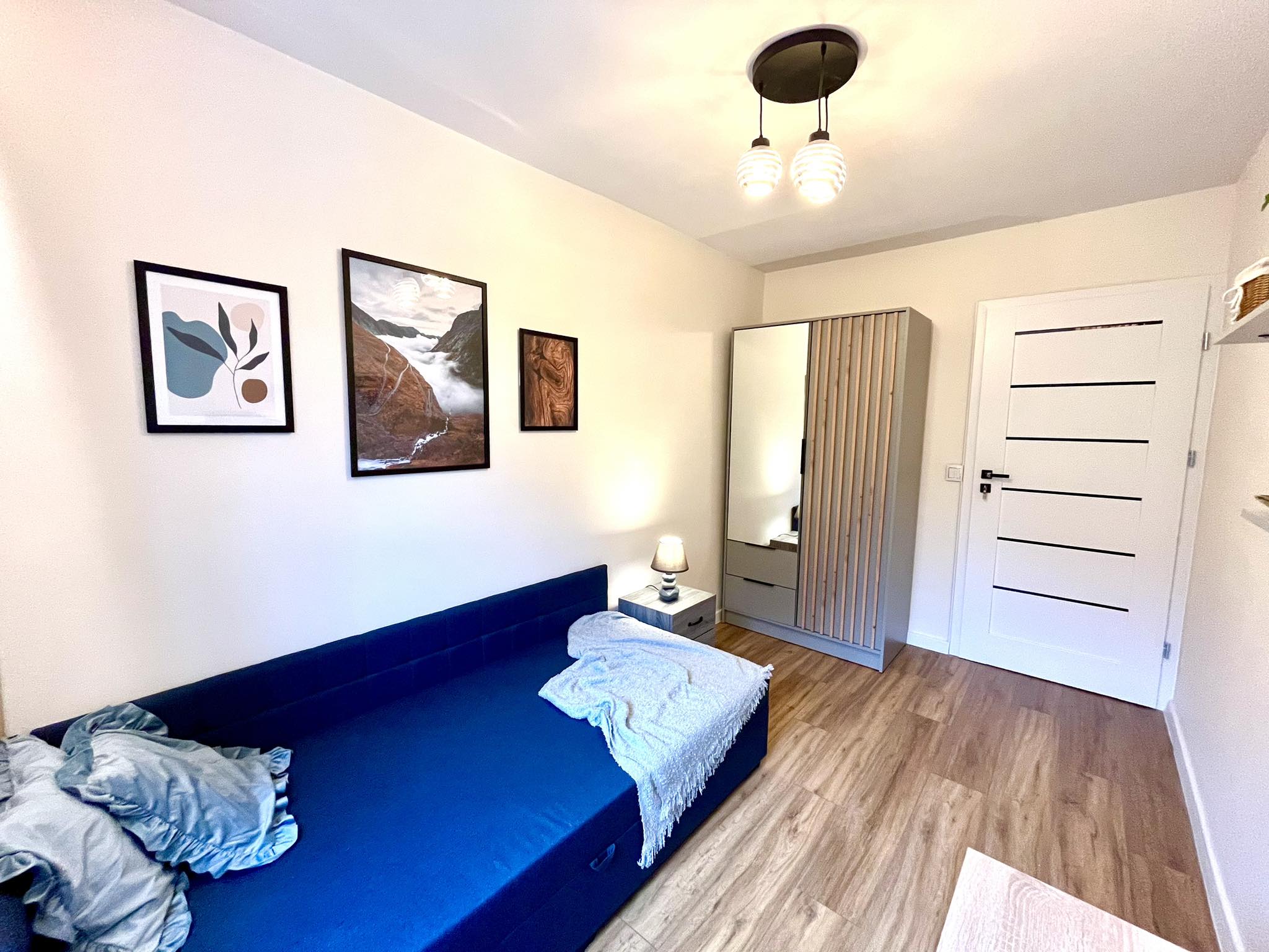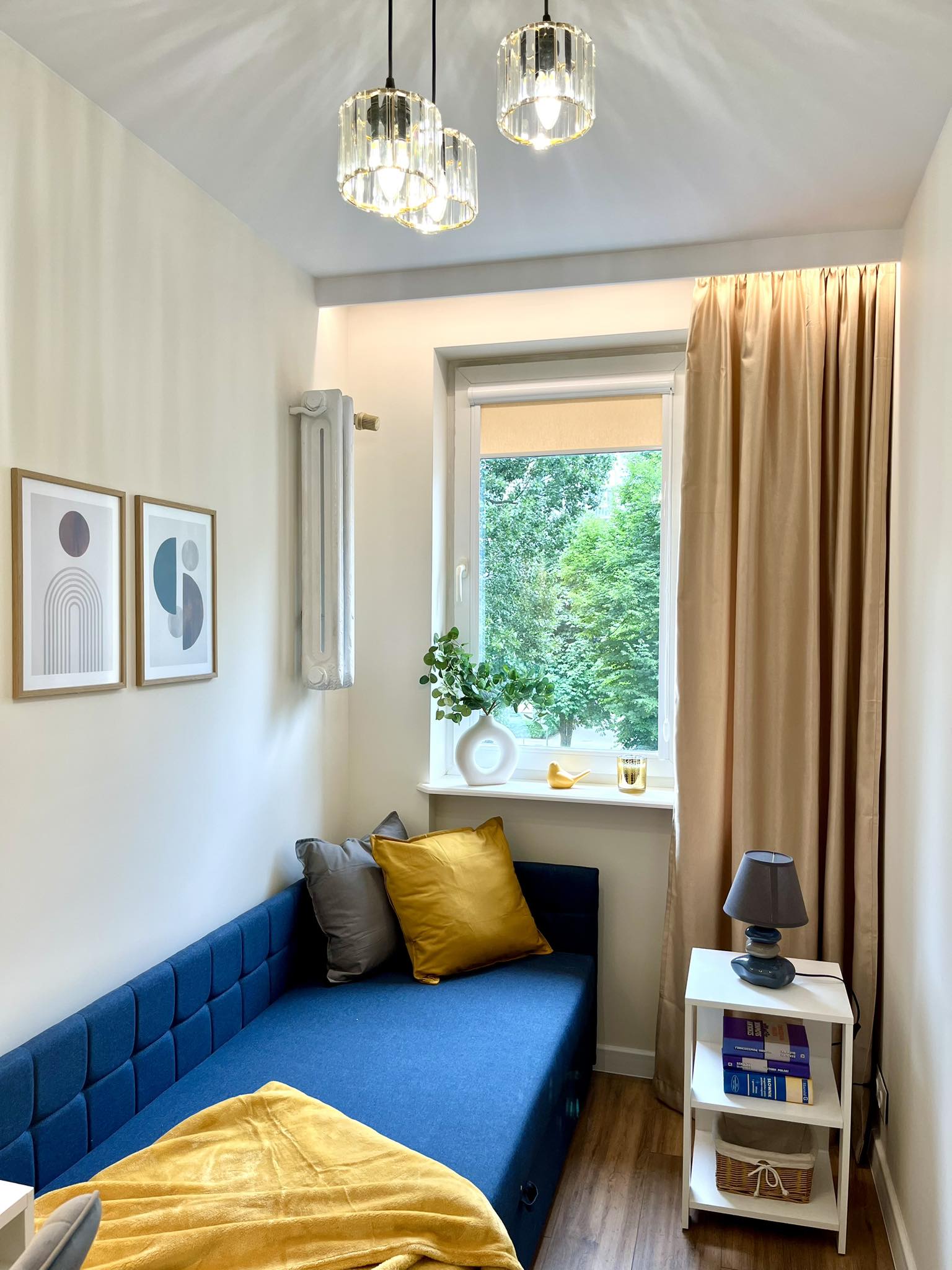 Mieszkanie wysprzątaliśmy, przygotowaliśmy home staging, który był nadzorowany przez naszą specjalistkę m.in dodaliśmy wiele dodatków ocieplających wnętrze, przemalowaliśmy ściany w korytarzu oraz przemeblowaliśmy część pokoi, tak by były bardziej przestronne i cieplejsze. Ważnym elementem w mieszkaniu jest oświetlenie, o które również zadbaliśmy. Następnym krokiem było przeprowadzenie profesjonalnej sesji zdjęciowej mieszkania, która pokazała potencjał wnętrz, ich przestronność oraz układ.
